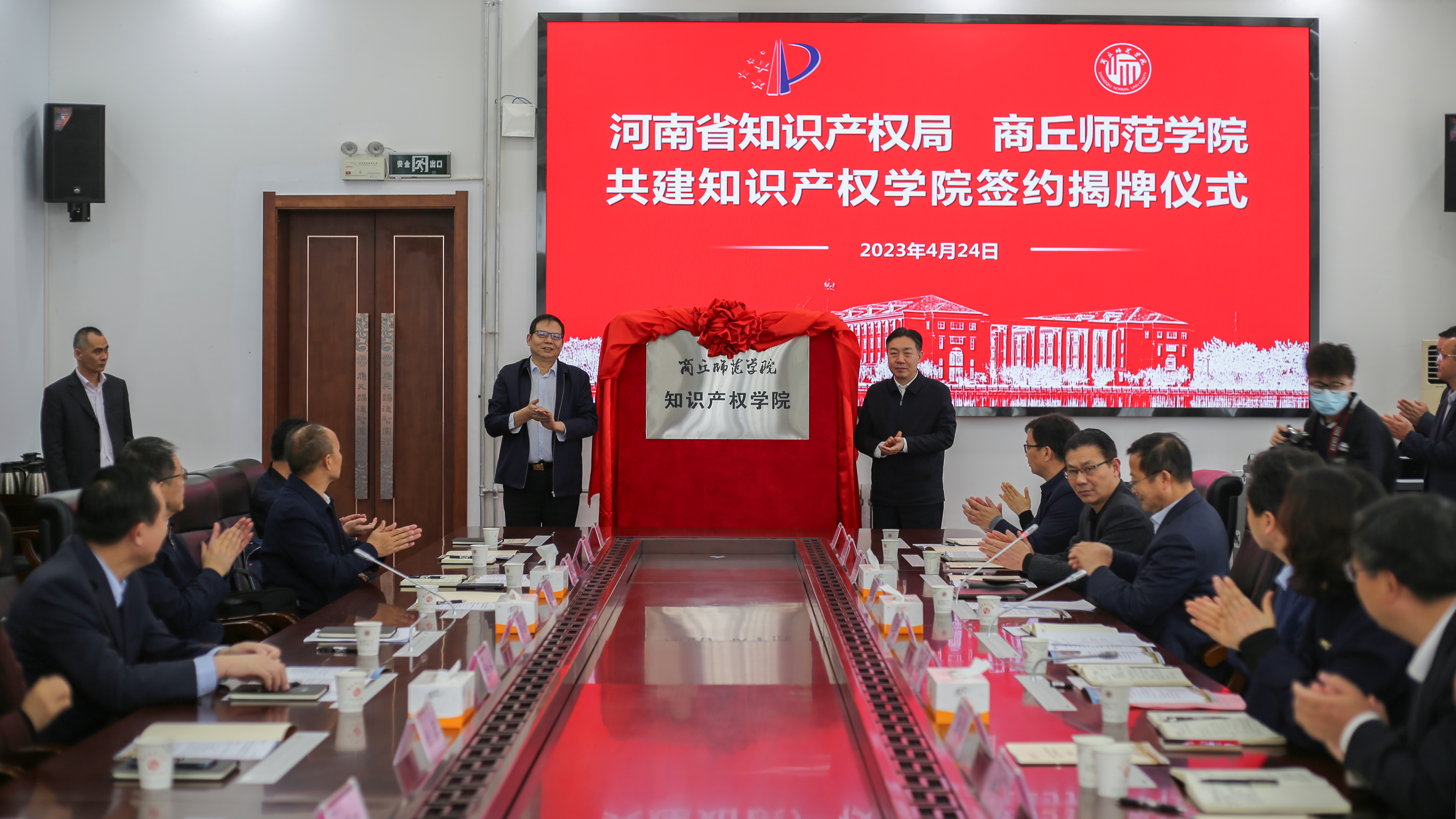 4月24日,河南省知识产权局与威尼斯886699共建知识产权学院签约揭牌仪式在威尼斯官网举行。河南省市场监督管理局党组成员刘怀章,河南省维权保护中心主任左斌,河南省市场监督管理局促进处处长梁华义,河南省知识产权维权保护中心办公室副主任刘蕾、一级主任科员姚海燕,商丘市人大常委会副主任曹月坤,商丘市市场监督管理局党组书记马索义、副书记张晓兴,威尼斯官网党委书记张志坚、校长陈向炜、副校长程功鹏出席。威尼斯官网相关部门、法学院(知识产权学院)负责人参加。签约揭牌仪式由程功鹏主持。