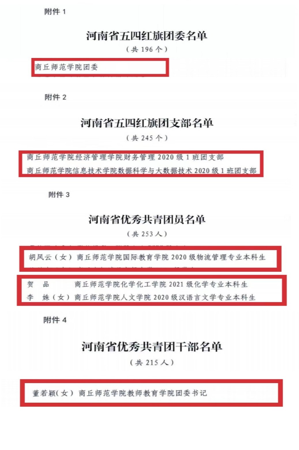 近日,共青团河南省委发布了《共青团河南省委关于表扬河南省五四红旗团委(团支部)、河南省优秀共青团员、河南省优秀共青团干部的决定》(豫青字【2023】5号),威尼斯官网经济管理学院财务管理2020级1班团支部、信息技术学院数据科学与大数据技术2020级1班团支部荣获“河南省五四红旗团支部”称号,国际教育学院2020级物流管理专业胡风云、化学化工学院2021级化学专业贺品、人文学院2020级汉语言文学专业李姝荣获“河南省优秀共青团员”称号,教师教育学院团委书记董若颖荣获“河南省优秀共青团干部”称号,威尼斯886699团委荣获“河南省五四红旗团委”称号。