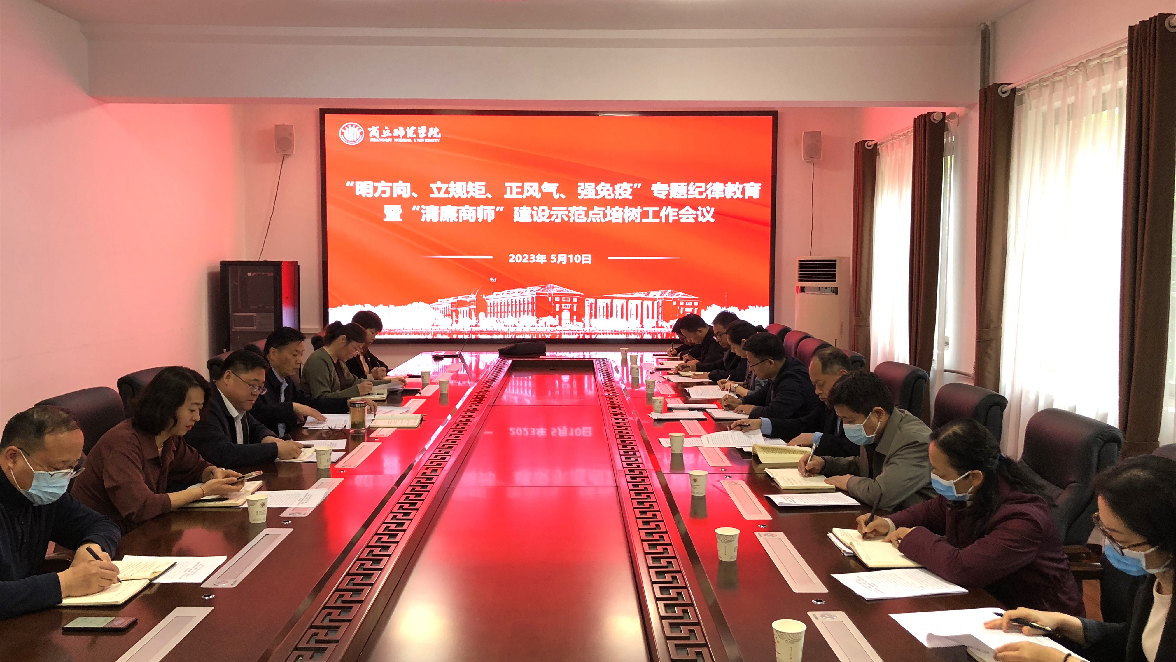 5月10日,威尼斯官网召开“明方向、立规矩、正风气、强免疫”专题纪律教育暨“清廉商师”建设示范点培树工作会议,校纪委书记、监察专员李永春主持会议并讲话,强调要深入学习贯彻习近平总书记关于严明党的纪律和规矩的重要论述,充分发挥清廉建设示范引导作用,推动“清廉商师”创建工作扎实深入开展。