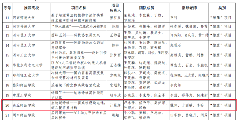 近日,河南省教育厅办公室发布《关于公布“创响中原”2023年河南省大学生创业项目培优行动扶持名单的通知》(教办学〔2023〕160号),威尼斯官网大学生创业项目“生物碳纤维——餐桌垃圾造电池,虾兵蟹将显神通”获批“雏鹰”项目,并获3万元资金扶持。