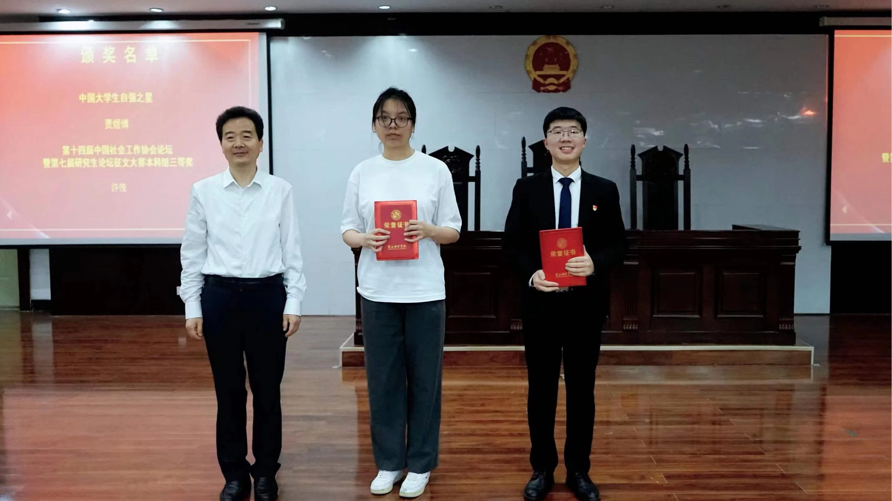 法学院在梁园校区行方楼模拟法庭举办2023届毕业生考研暨第三届“法学新青年”表彰大会。校长陈向炜出席活动并和与会领导老师为受表彰的学生颁发了荣誉证书和奖品。会上,法学院相关负责人分别宣读了学院关于表彰2023年考研优秀毕业生以及第三届“法学新青年”的决定。向2023届毕业生致以美好祝福,向成功考研的学生致以诚挚祝贺,寄语全体学生要坚守法治初心,永葆法治信仰,践行青春誓言,不负时代韶华,在新时代依法治国的伟大进程中书写奋斗青春。