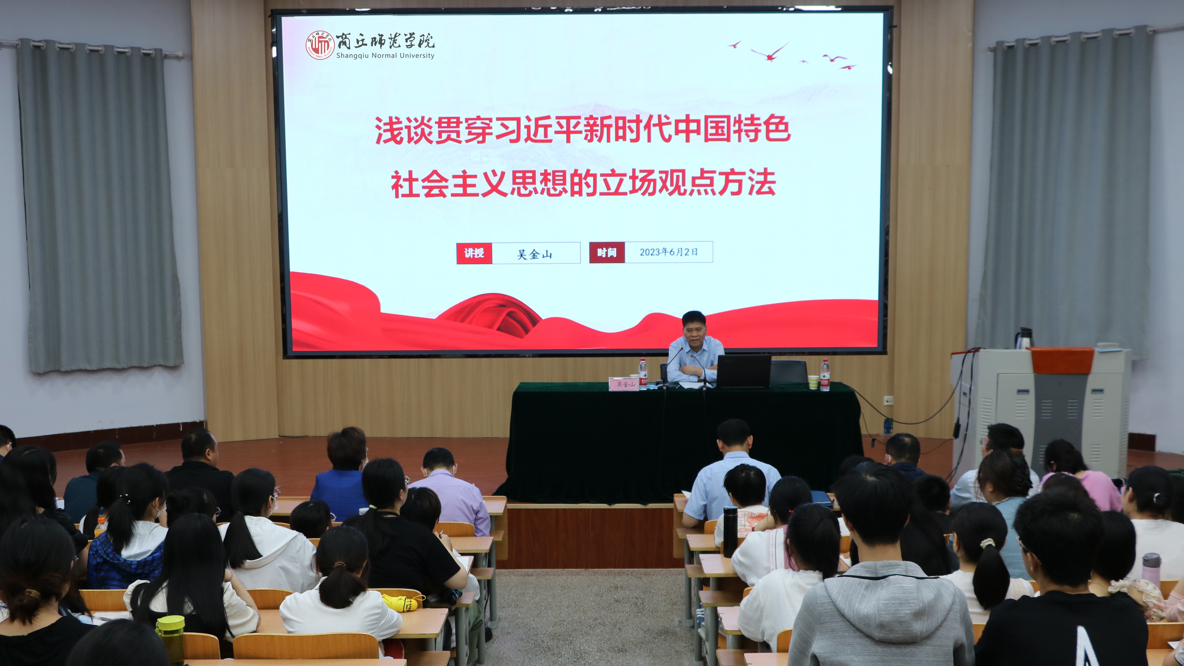 校党委副书记吴金山深入数学与统计学院,以《贯穿习近平新时代中国特色社会主义思想的立场观点方法》为题,为学生上了一堂思想政治课。吴金山指出,广大师生要以主题教育为契机,深入学习习近平新时代中国特色社会主义思想和党的二十大精神,加强党的创新理论武装,坚持好、运用好贯穿其中的立场、观点、方法,切实把党的创新理论贯彻落实到教育教学全过程。吴金山强调,广大青年大学生要牢记习近平总书记的嘱托,坚定不移听党话、跟党走,珍惜美好年华,努力学习、刻苦钻研、以知促行、以行求知,为人生之路奠定坚实知识基础,奏响无愧于人民、无愧于时代的青春乐章。