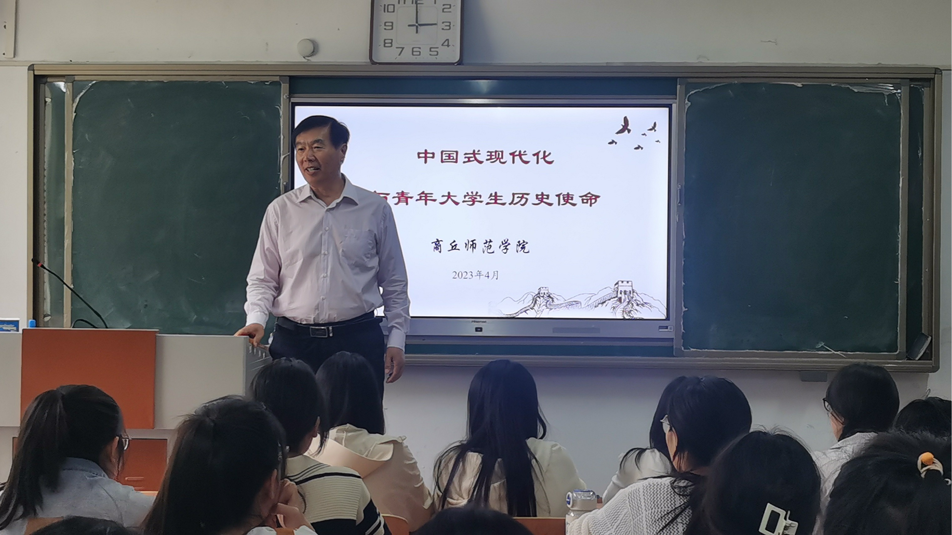 校党委副书记、工会主席朱伟深入马克思主义学院以《中国式现代化与青年大学生历史使命》为题,从中国式现代化的时代背景、中国式现代化的探索历程、中国式现代化的基本内涵、用科学世界观方法论认识中国式现代化、中国式现代化与青年学生的历史使命五个方面,给思想政治教育专业2022-2班的学生讲了两节思政课。朱伟从全球视野审思中国现代化进程,回顾了19世纪中叶以来中国的仁人志士探索中国现代化道路的历史进程,对中国式现代化“为什么”“是什么”“干什么”“怎么干”“抓什么”“靠什么”等问题进行了深刻阐述。在课堂教学的最后,朱伟殷切希望广大青年学生牢记“空谈误国、实干兴邦”,胸怀“国之大者”,立志做有理想、敢担当、能吃苦、肯奋斗的新时代好青年。