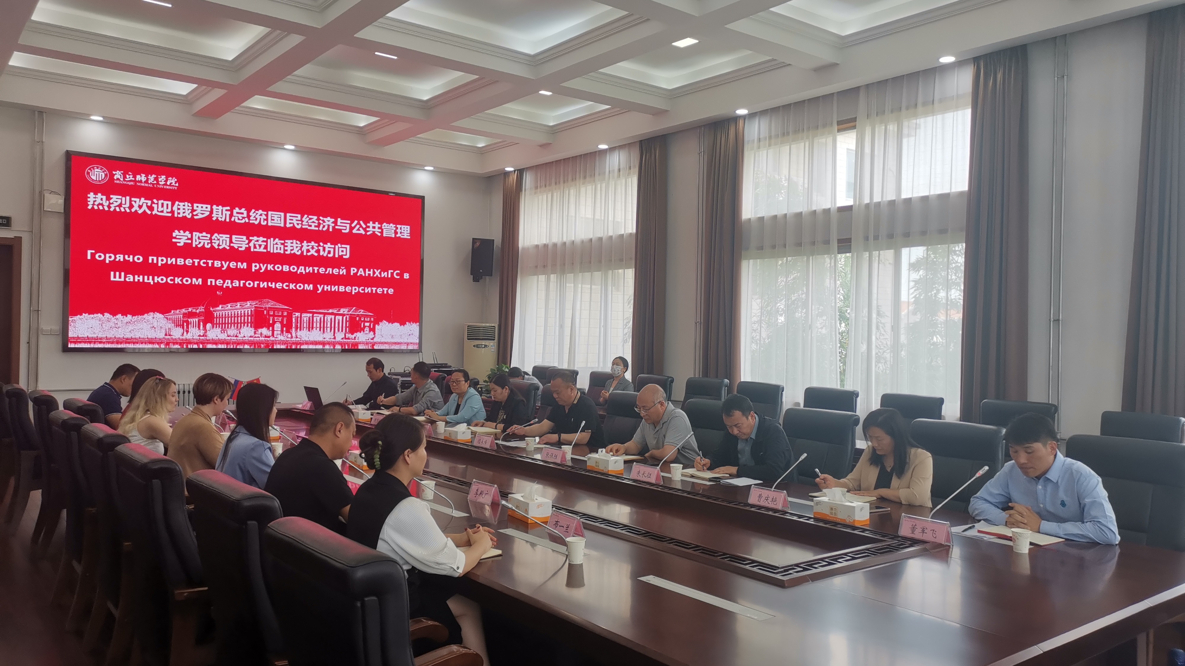 5月23日,俄罗斯总统国民经济与公共管理学院(以下简称俄联邦总统国家行政学院)社会科学学院外国留学生培训中心主任库齐娜•叶卡捷琳娜•伊戈列夫娜,副主任施泰茨贝格•阿莲娜•米哈伊洛夫娜一行访问威尼斯官网。国际交流处接待并组织了洽谈会和学生交流等活动,副校长程功鹏出席活动。