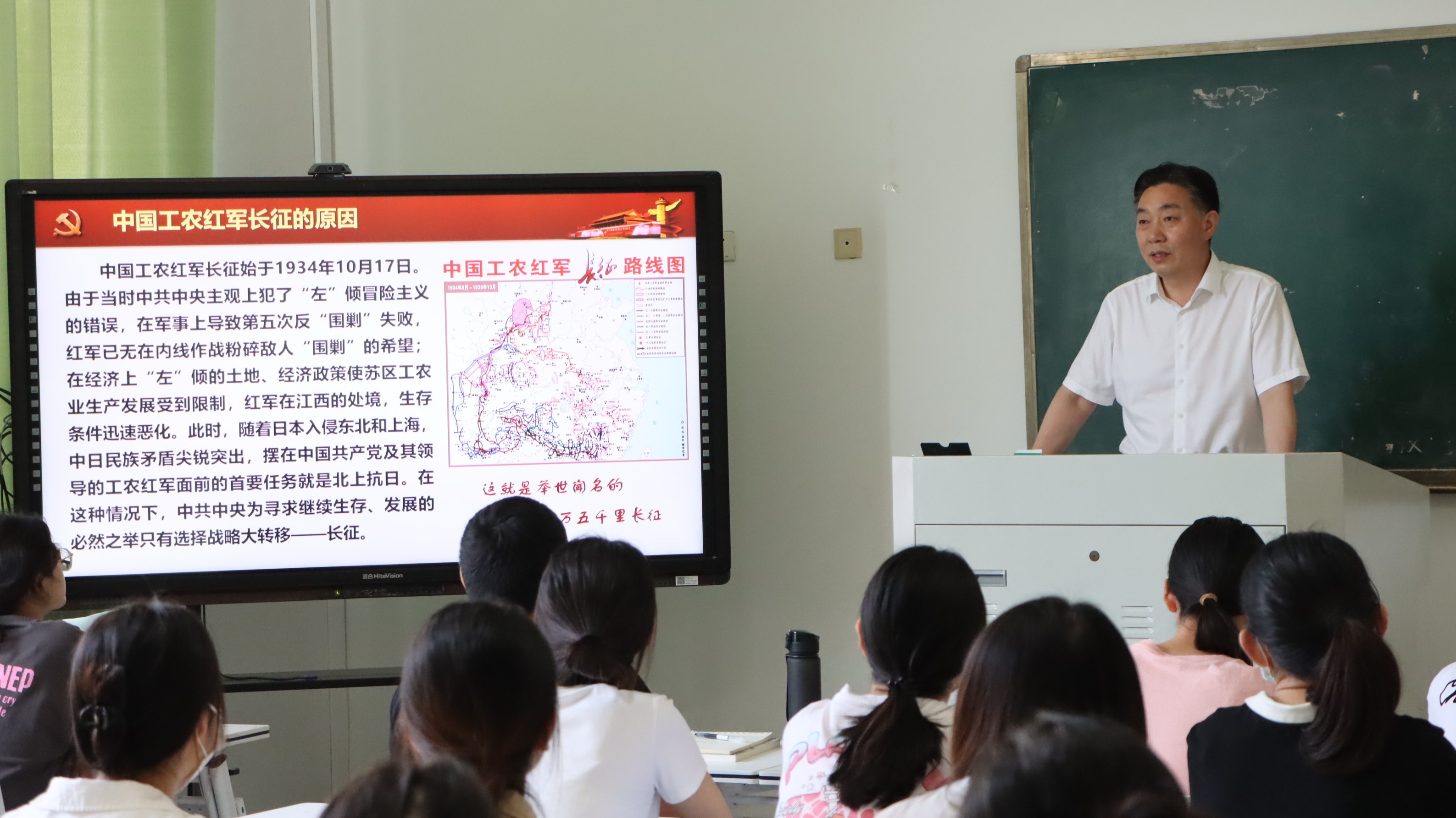 为进一步深化党的二十大精神学习,加强党史学习教育,以伟大长征精神武装师生头脑,6月8日上午,在行方楼210教室,党委书记张志坚以“遵义会议——永放光芒”为题,为马克思主义学院部分思政课教师和2020级思政专业学生上了一堂十分精彩的思政课。