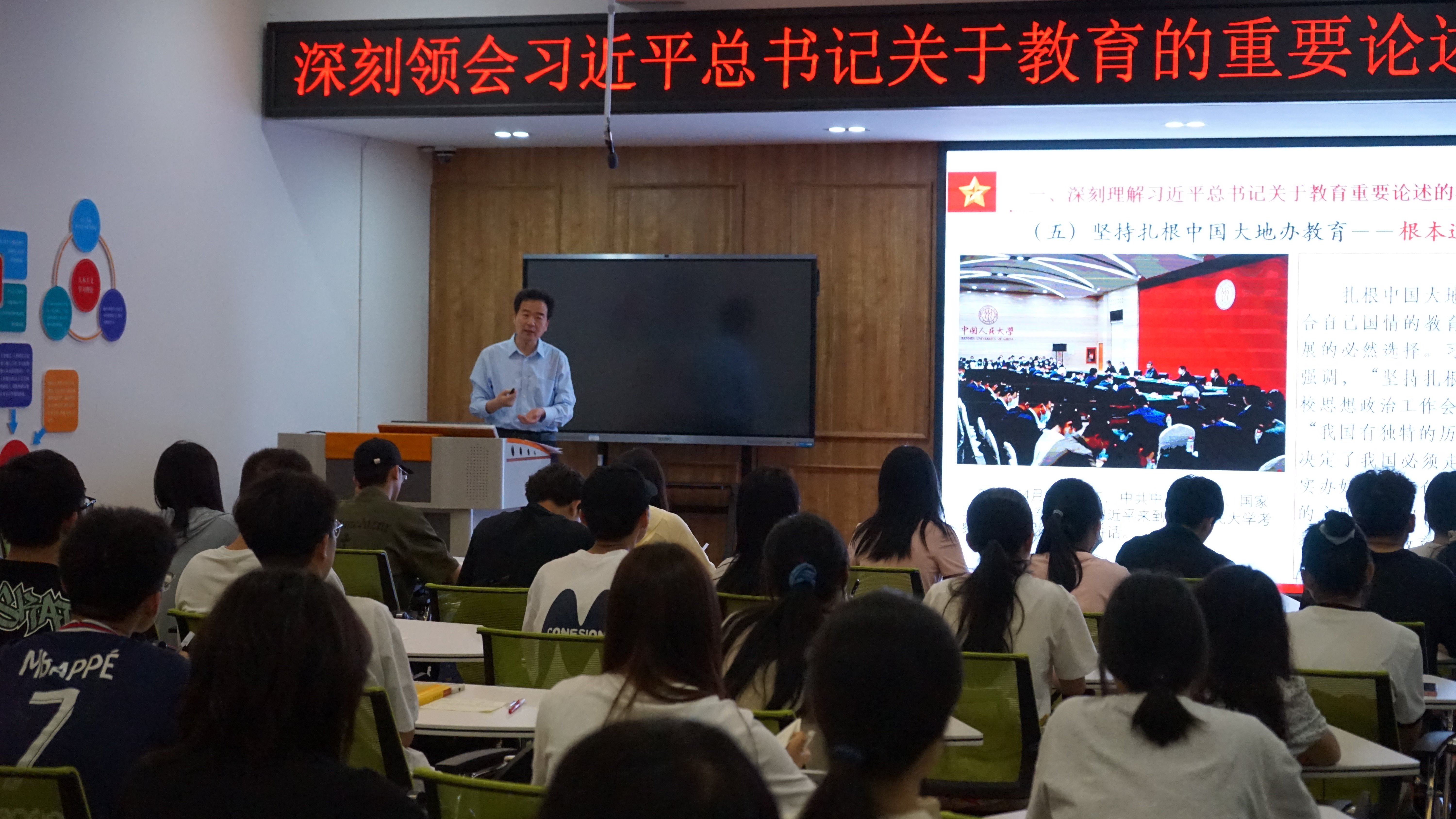 为深入学习贯彻习近平新时代中国特色社会主义思想,让党的创新理论润泽青年学子,6月7日,校长陈向炜在行方楼234教室,以“深刻领会习近平总书记关于教育的重要论述 奋力建设高水平应用型大学”为题为法学院2022级法学专业全体学生讲授了一堂有高度、有深度、有温度的专题思政课。