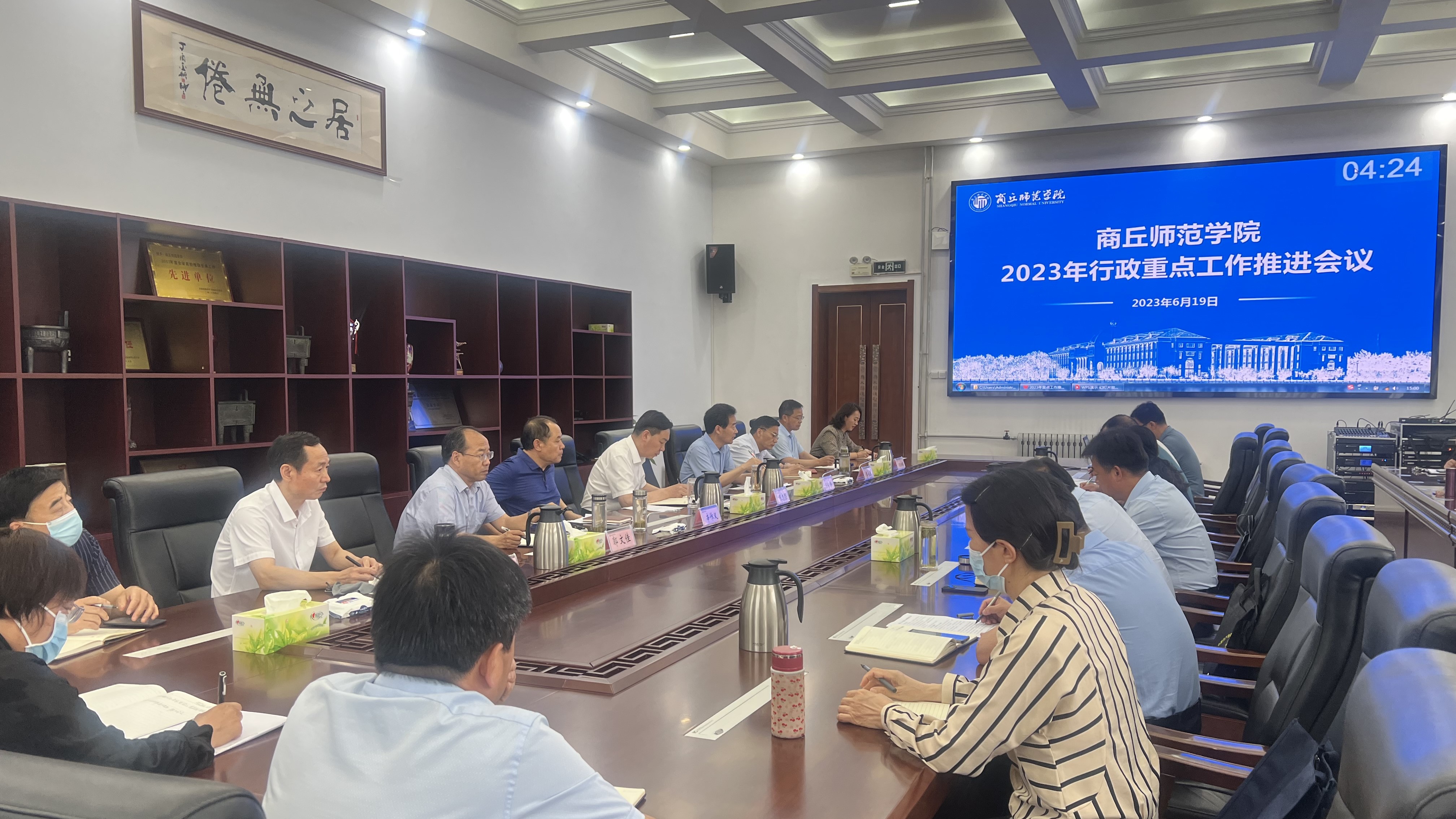 6月19日,威尼斯官网在梁园校区归德楼320会议室召开2023年行政重点工作推进会,校领导张志坚、陈向炜、辛作义、李永春、郭文佳、程功鹏、张箭出席会议,党政办公室、校纪委及各行政教辅部门负责人参加会议。会议由校长陈向炜主持。