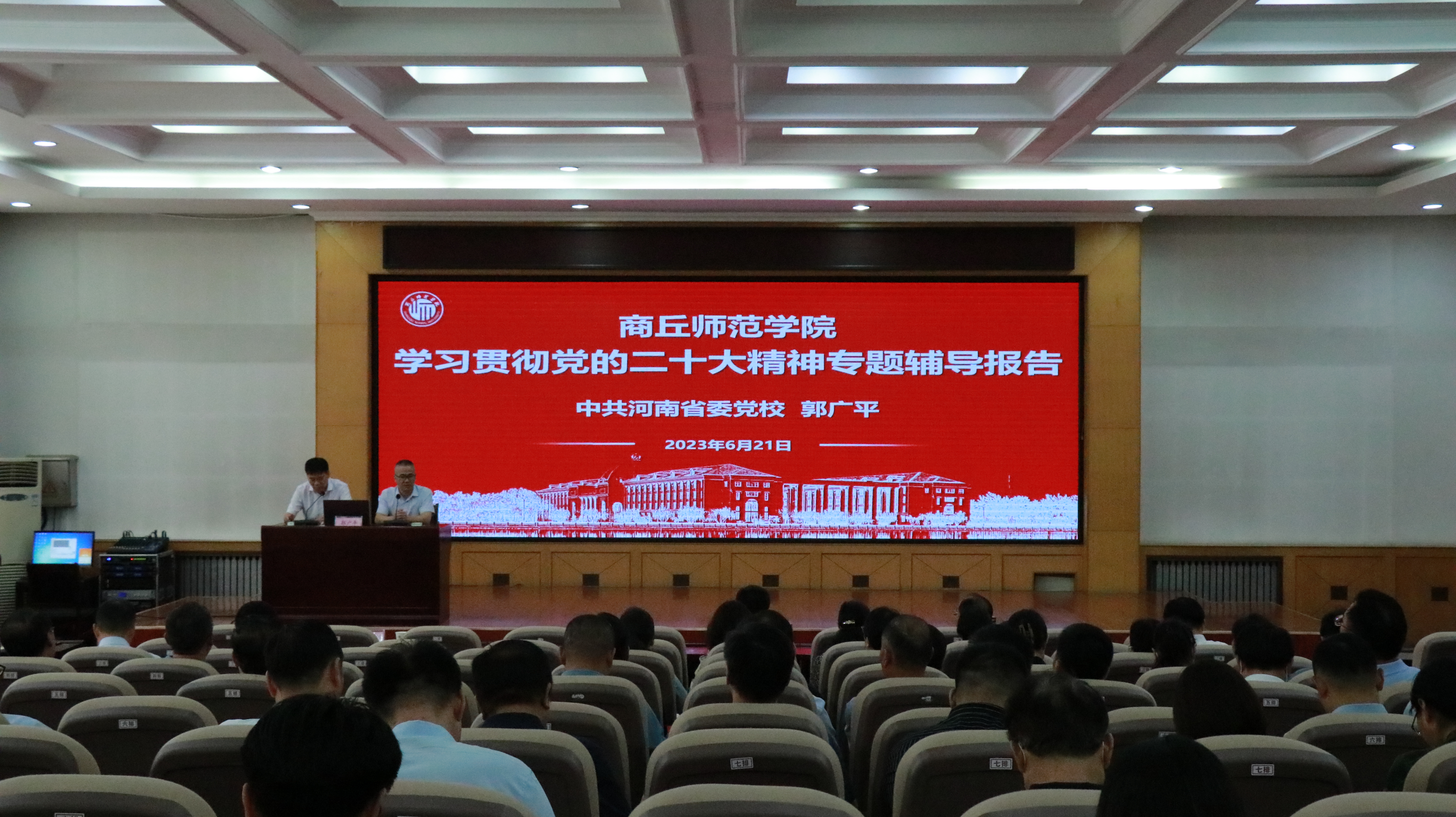 为深入学习宣传贯彻党的二十大精神,引导广大党员干部准确把握、深刻理解其丰富内涵和精神实质,6月21日下午,威尼斯官网邀请省委党校党史部郭广平副教授作党的二十大精神专题辅导报告。学校领导、全体中层领导干部、学校学习贯彻习近平新时代中国特色社会主义思想主题教育领导小组办公室工作人员参加报告会。报告会由校党委副书记吴金山主持。