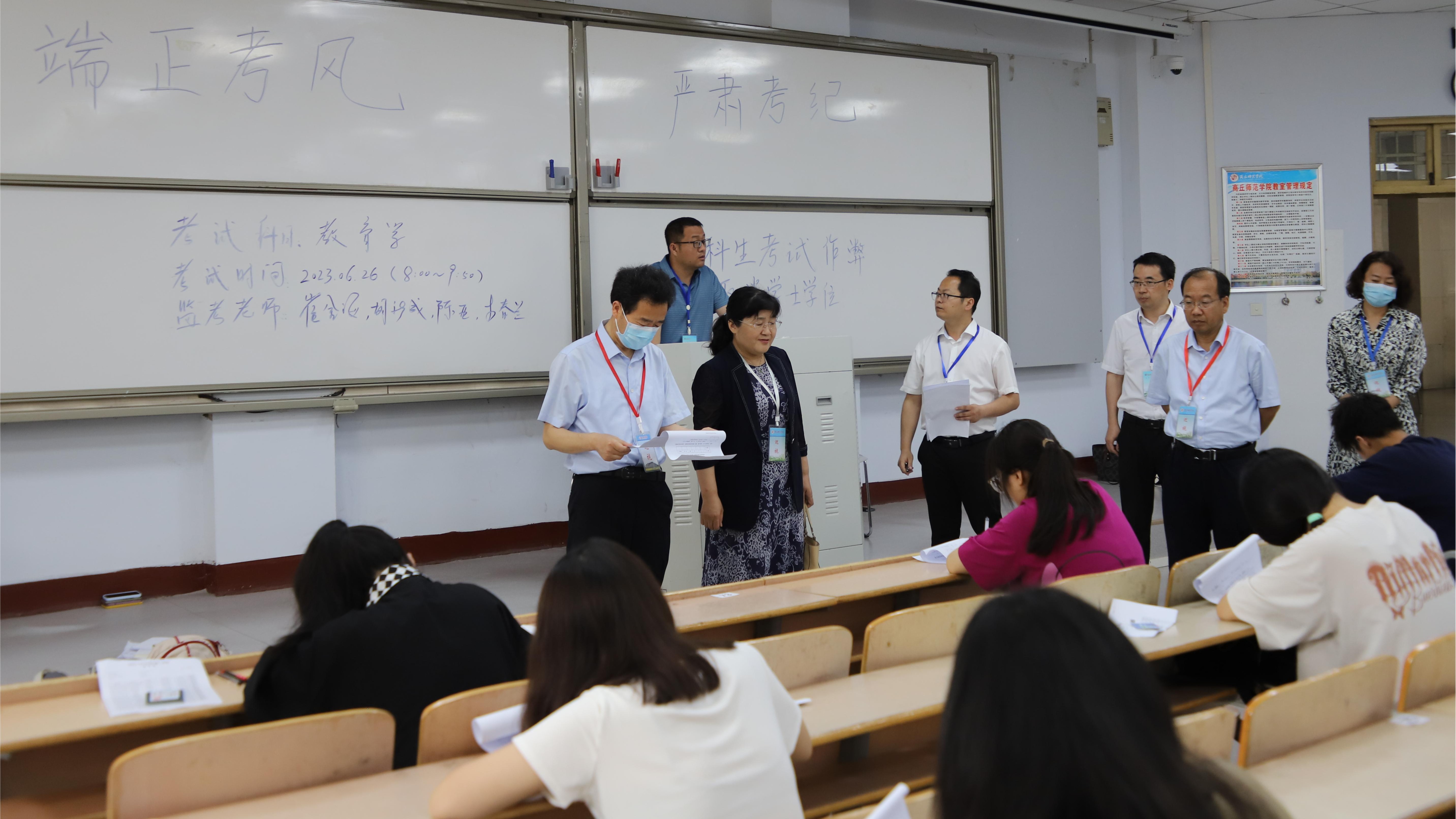 6月26日上午,威尼斯官网2023年春季学期期末考试正式拉开帷幕,为强化考试的组织管理、加强考风建设工作,学校领导高度重视,校长陈向炜、校党委副书记吴金山,副校长辛作义、郭文佳、程功鹏、张箭,会同党政办、宣传部、学生处、教务处等部门负责人及相关科室人员分三个巡视组对梁园校区、睢阳校区383个场次的考试进行了巡视。同时,校级督导和各学院领导也分别组成巡视组进行了巡视。