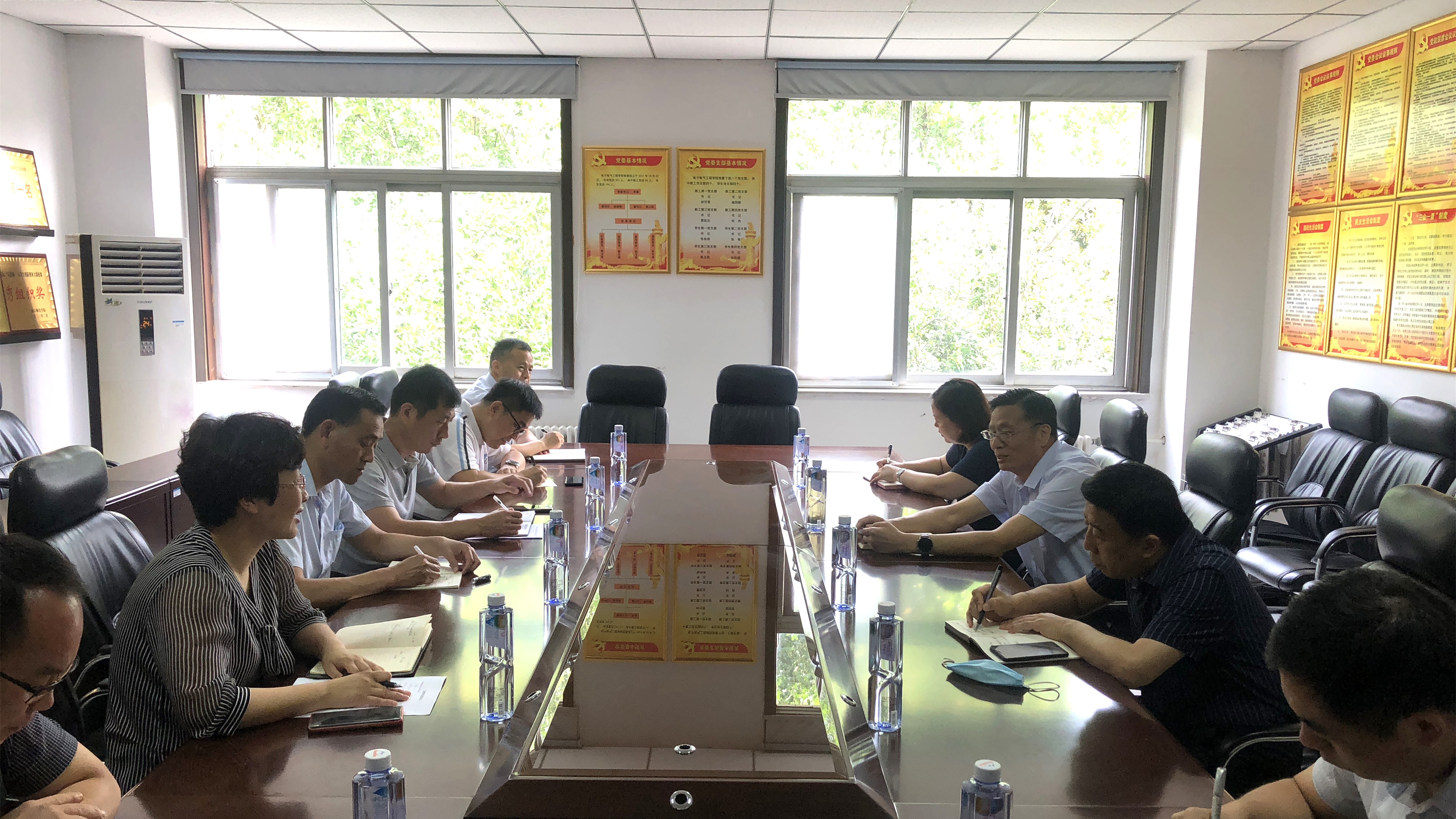 李永春首先听取了各单位主题教育开展情况介绍,深入了解基层党组织党风廉政建设、师德师风、意识形态、安全稳定等工作中的经验做法以及存在的堵点、难点、痛点,在交流过程中对相关问题一一进行了具有针对性的指导,提出了切实可行的建议。