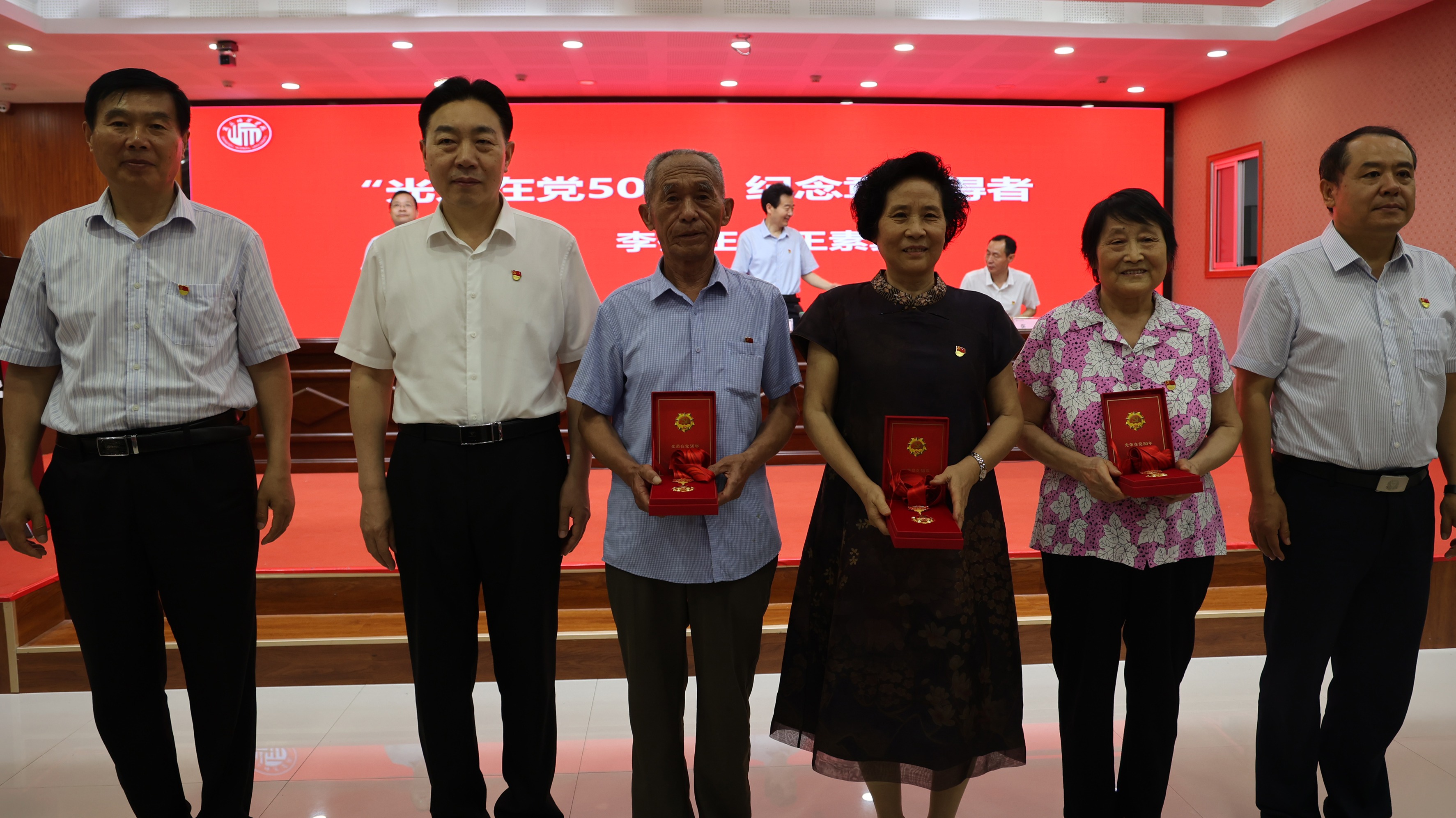 党委书记张志坚,党委副书记、工会主席朱伟、副校长辛作义为威尼斯官网三位老党员颁发“光荣在党50年”纪念章。