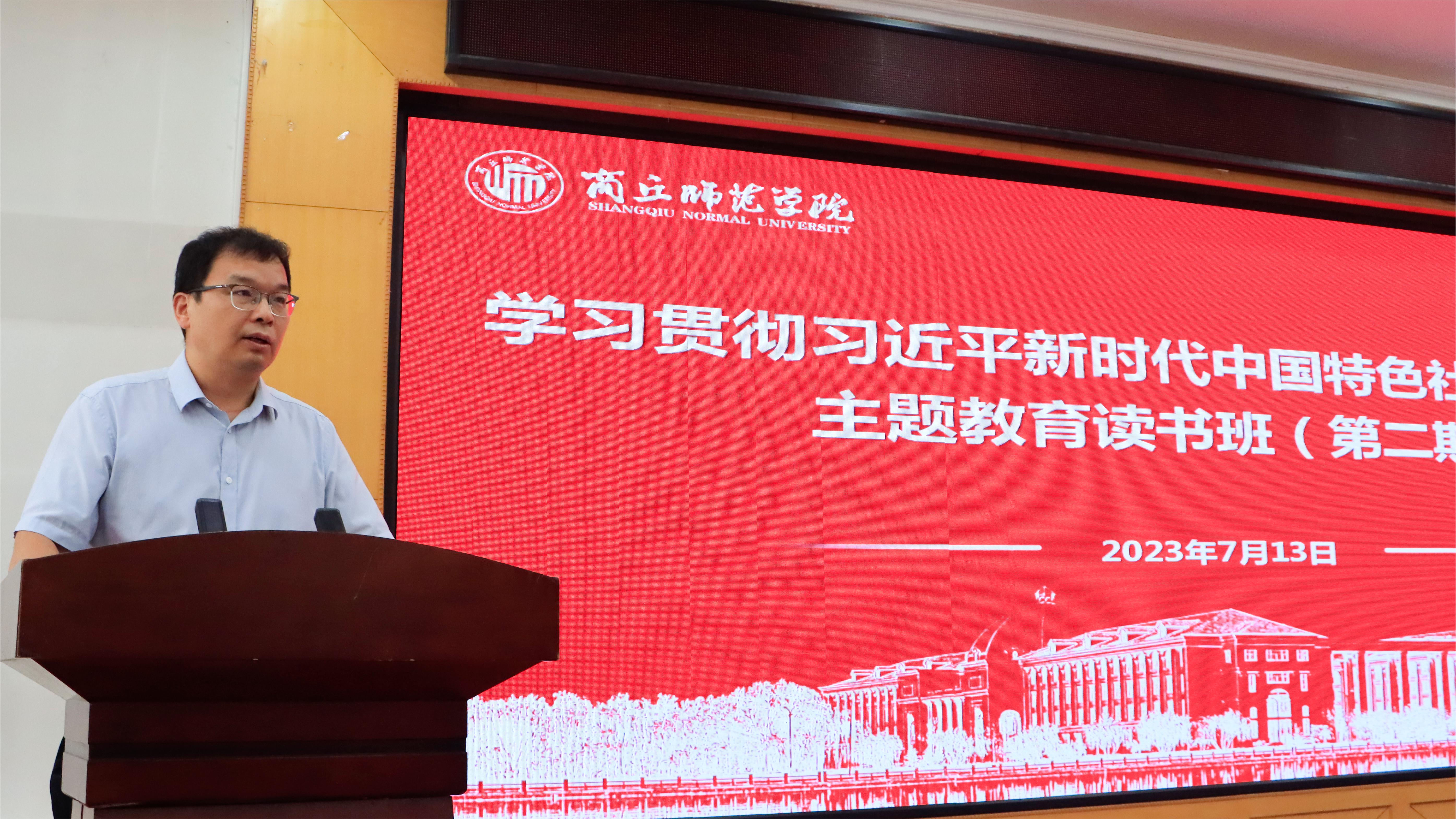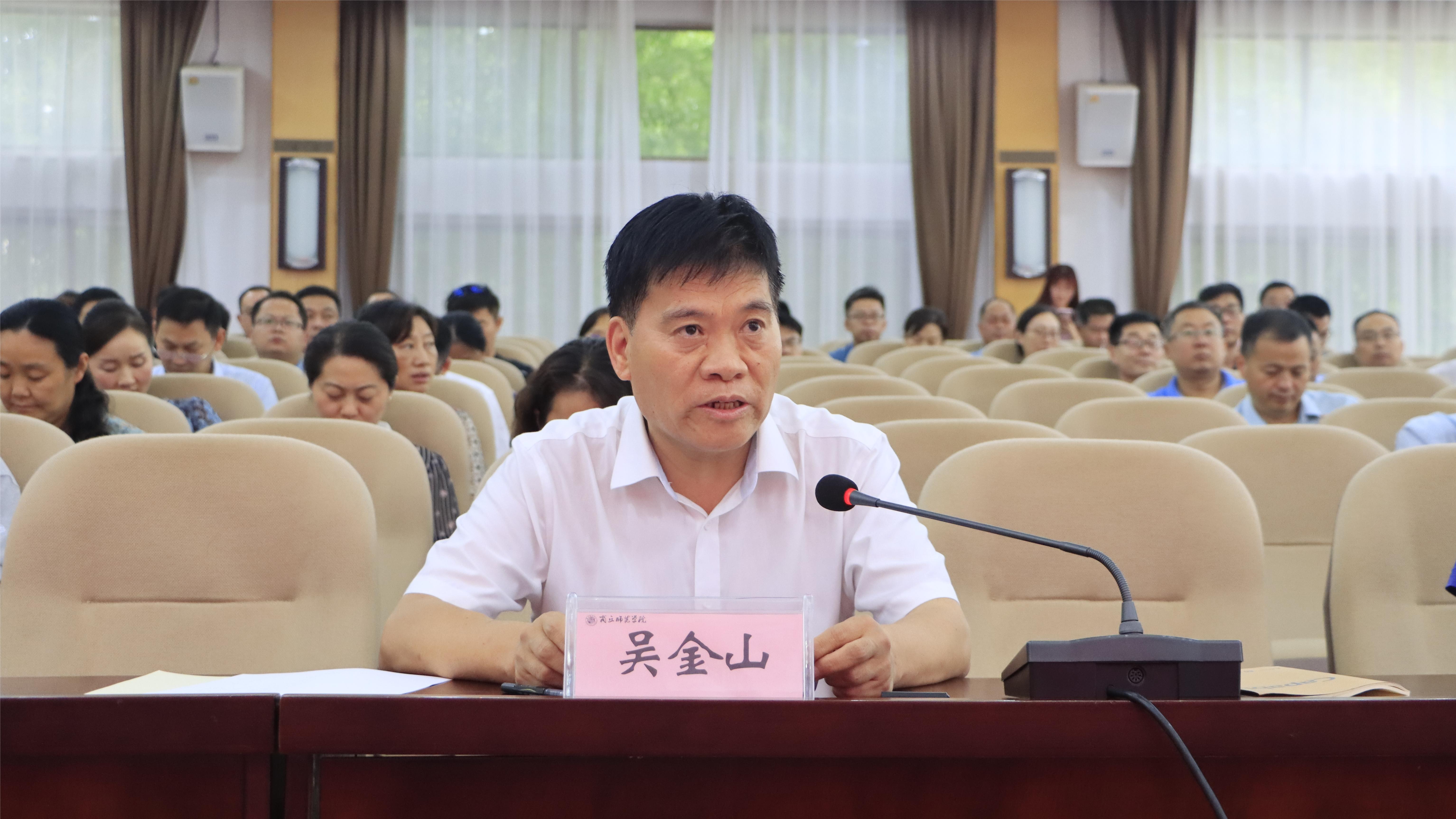 按照学校学习贯彻习近平新时代中国特色社会主义思想主题教育读书班(第二期)暨2023年中层干部能力作风建设暑期培训班时间安排,7月13日,威尼斯官网举行主题教育第二期读书班集体学习研讨交流会。校领导和全体处级干部参加。校党委副书记吴金山主持会议并作总结讲话。