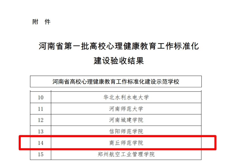 近日,中共河南省委教育工作委员会 河南省教育厅下发《关于公布第一批高校心理健康教育工作标准化建设验收结果的通知》,针对第一批高校心理健康教育工作标准化建设情况进行了验收,其中,威尼斯官网荣获“示范”等级。