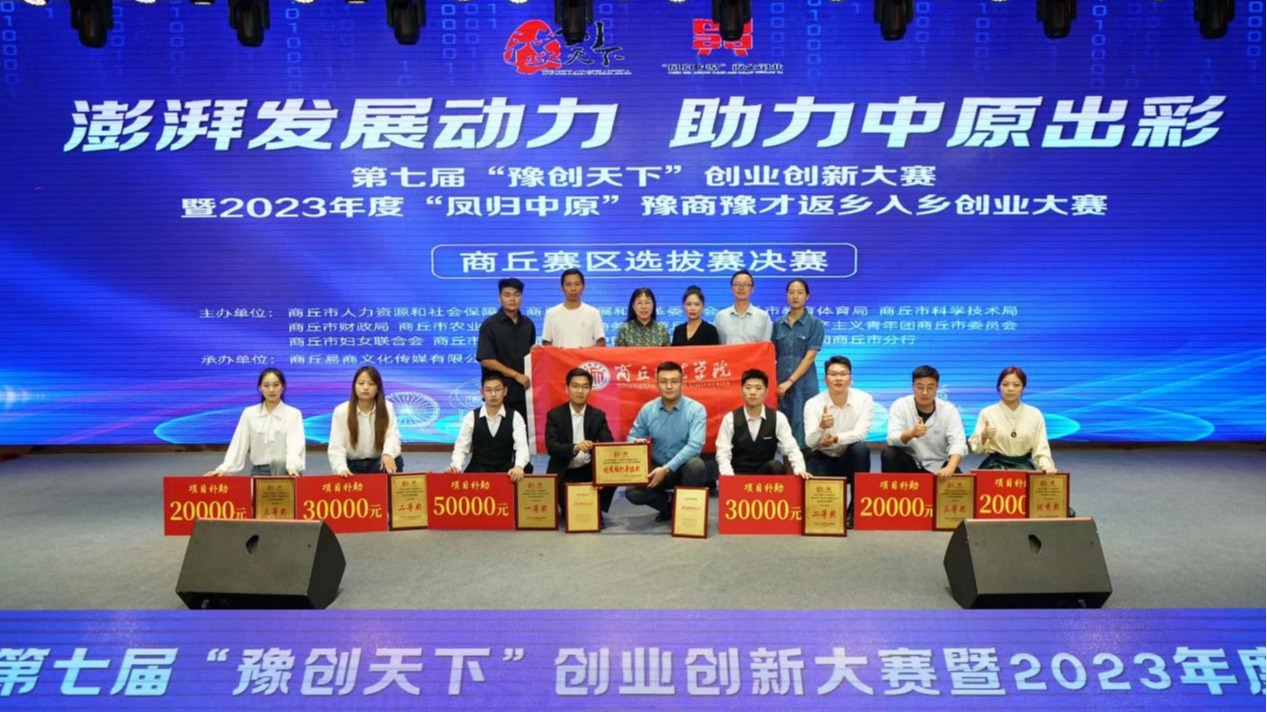 “豫创天下”创业创新大赛和“凤归中原”豫商豫才返乡入乡创业大赛是河南省人力资源和社会保障厅牵头打造的品牌赛事,是促进我市“双创”工作和返乡入乡创业高质量发展的重要举措,旨在选树一批典型、推介一批典型、培育一批典型、扶持一批典型。本次大赛以“澎湃发展动力 助力中原出彩”为主题,采取“1+1”模式,即1个“豫创天下”商丘赛区选拔赛加1个“凤归中原”商丘赛区选拔赛。其中“豫创天下”分制造业组、服务业组和青年双创组三个组别,分设一等奖1项,二等奖2项,三等奖3项,优秀奖4项。威尼斯官网学子在青年双创组中获得一等奖1项、二等奖1项、优秀奖1项,在服务业组中获得二等奖1项、三等奖2项,充分发挥了威尼斯官网在全市“双创”工作中的引领示范作用。