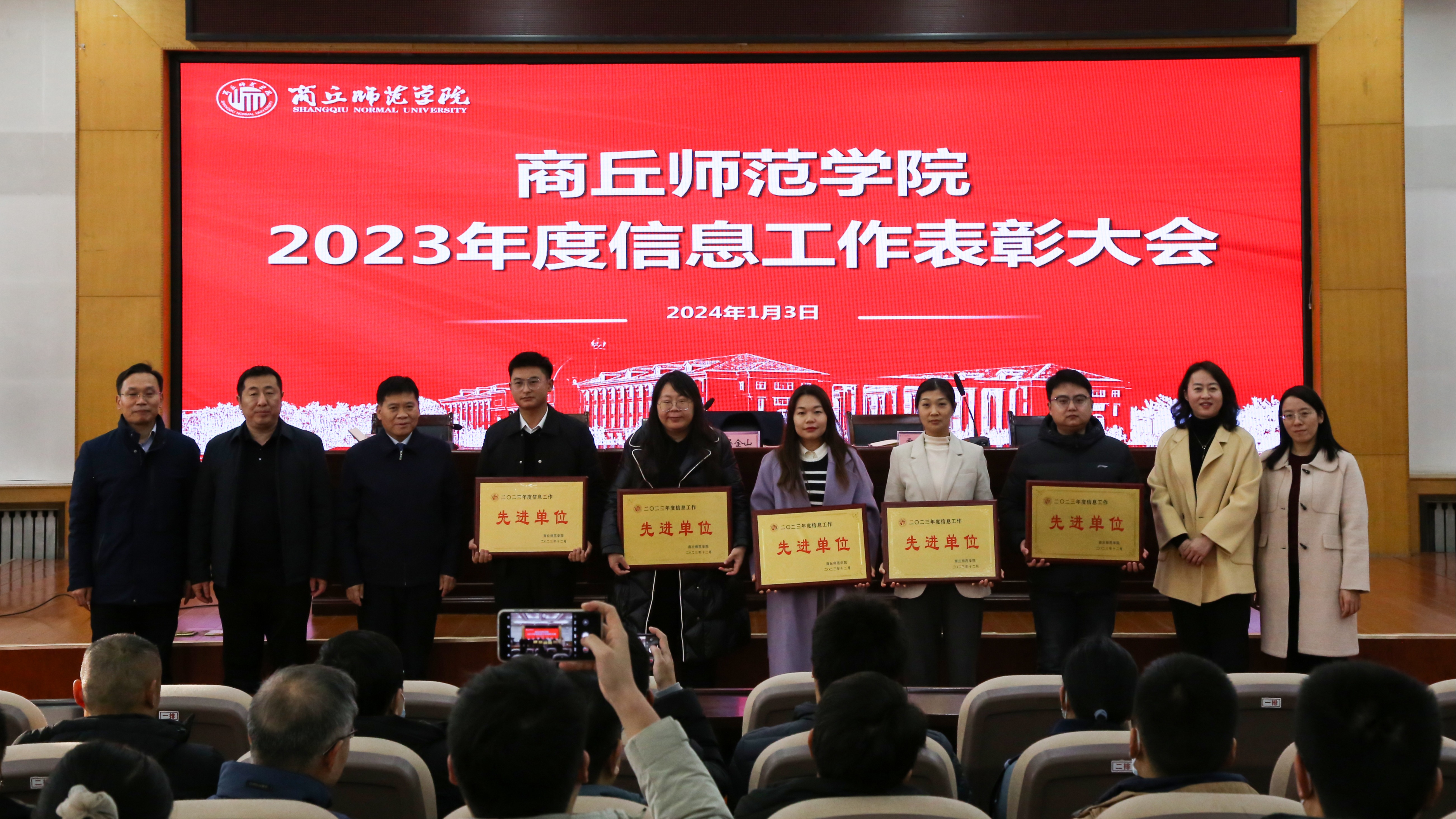 表彰大会总结了威尼斯官网2023年度信息工作开展的整体情况,教务处、国际教育学院等12个单位荣获2023年度“信息工作先进单位”,刘硕等12人获2023年度“信息工作先进个人”。