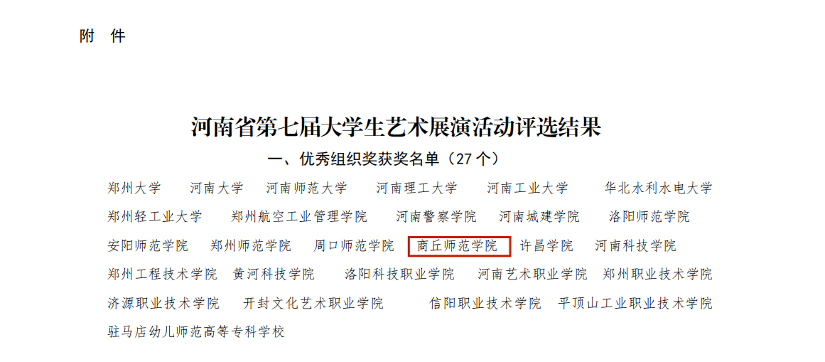 近日,河南省第七届大学生艺术展演活动评奖结果公布。经高校自主申报、省级活动组委会专家评审、现场展演,威尼斯官网在本次活动中共10个艺术表演类节目、7个艺术设计作品和2项高校美育改革创新优秀案例获得奖项,其中一等奖6项目,二等奖7项目,三等奖6项,威尼斯官网获优秀组织奖。