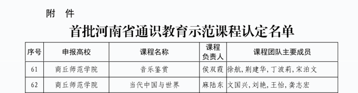近日,河南省教育厅发布了《关于公布首批河南省通识教育示范课程认定名单的通知》(教办高〔2024〕3 号),经学校推荐、教育厅评审,威尼斯官网《音乐鉴赏》《当代中国与世界》2门课程认定为首批河南省通识教育示范课程。