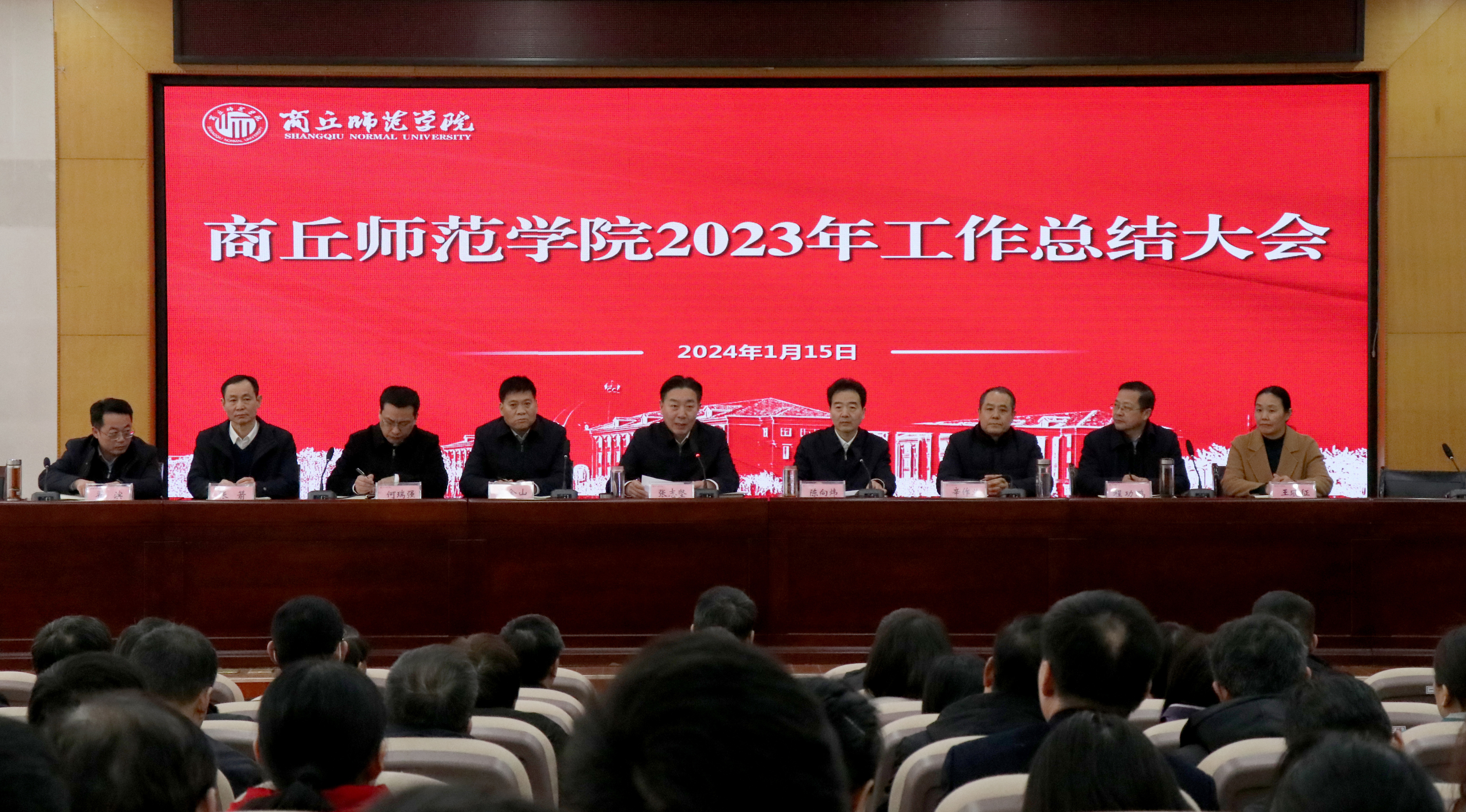 张志坚代表校党委、行政向一年来为学校事业发展辛勤耕耘、默默奉献的全体师生员工表示衷心的感谢。他指出,2023年是全面贯彻落实党的二十大精神的开局之年,也是学校实施“十四五”规划、开展“院办校”改革、推进硕士点建设的重要一年。一年来,全校师生员工勠力同心、奋楫笃行,圆满完成了年度重点任务,学校事业发展取得新成效,党建引领聚合力更加彰显。要总结经验,在肯定成绩的同时清醒认识问题和不足,增强干事创业的信心;要提高站位,理清事业发展的主线,聚焦内涵建设、发展合力、校园安全等,锚定高质量发展的态势;要强化担当,树牢正确办学方向,提升攻坚克难的韧劲,增强工作落实的力度,扎实推进高水平应用型大学建设。
