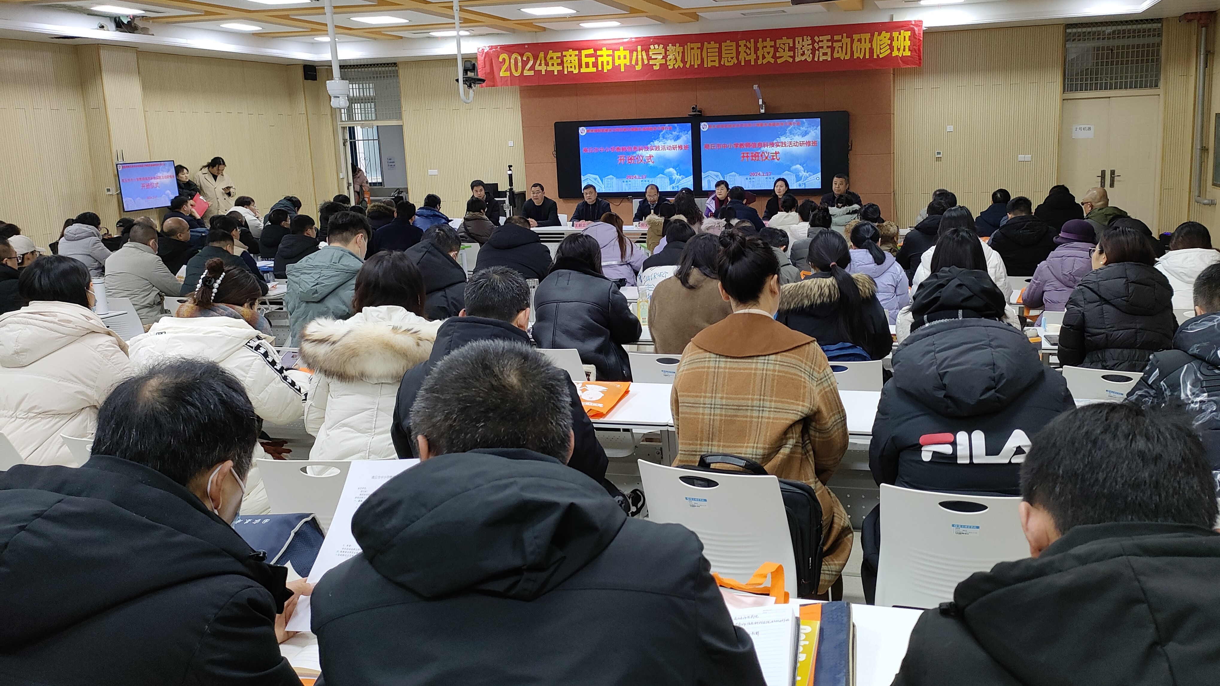 1月17日,商丘市中小学教师信息科技实践活动研修班在威尼斯官网梁园校区汉梁楼顺利开班。威尼斯官网副校长郭文佳,商丘市教育资源保障中心党委书记王新立出席开班仪式。