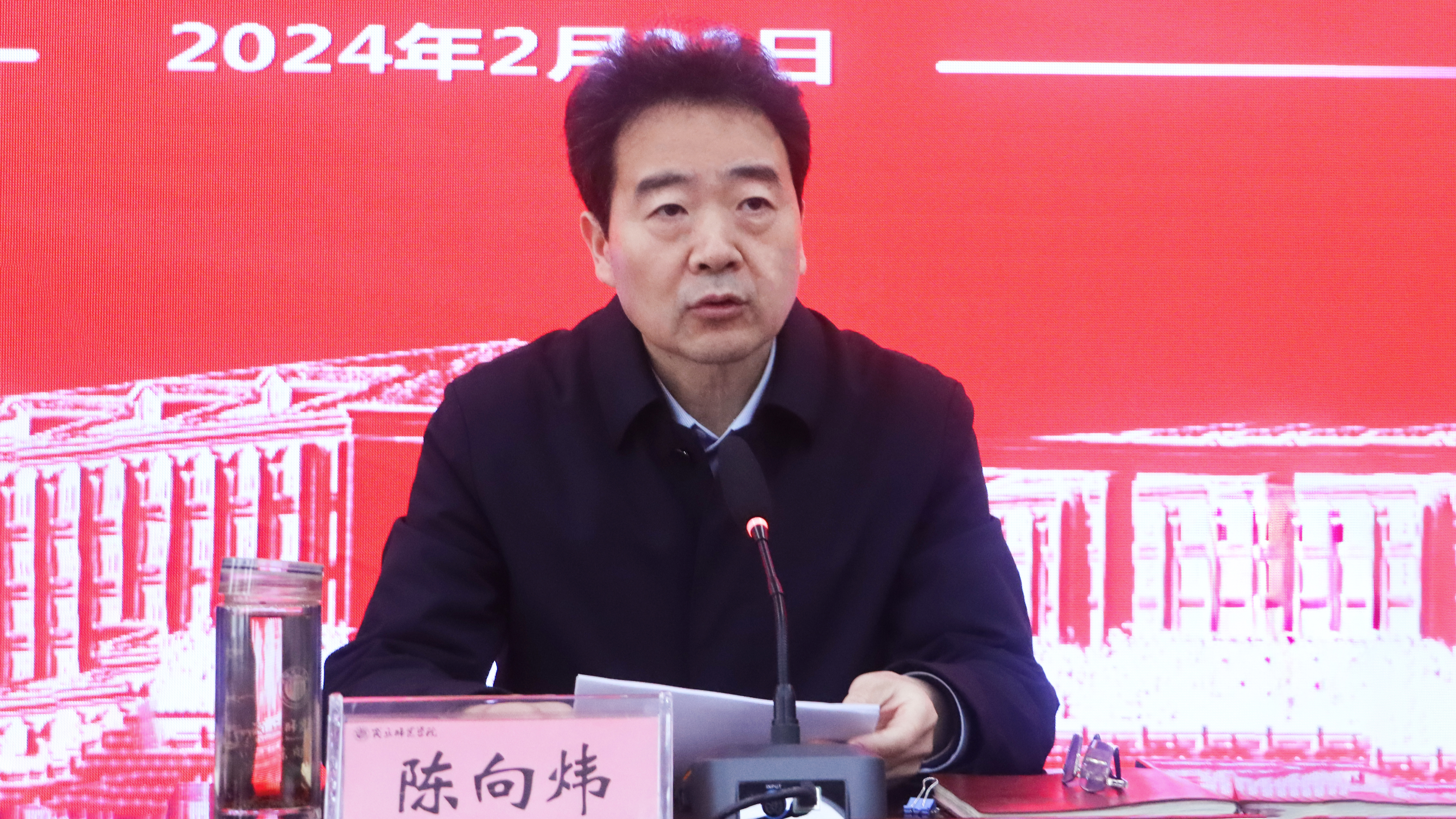 陈向炜从统筹推进重大建设任务、持续深化教育教学综合改革、重点实施科教融汇协同发展工程、深入实施高水平教师队伍建设工程、持续打造学生工作服务品牌、深入推进开放活校战略、持续提升综合保障服务水平、以党建引领高质量发展等八个方面对2024年学校工作进行了部署。陈向炜要求各级领导干部发扬勇往直前、顽强拼搏的拼劲,龙腾虎跃、鱼跃龙门的闯劲,动真、来实、碰硬的狠劲,连续抓、经常抓、深入抓的韧劲,以校为家、勇于担当,高质量完成新一年工作目标。