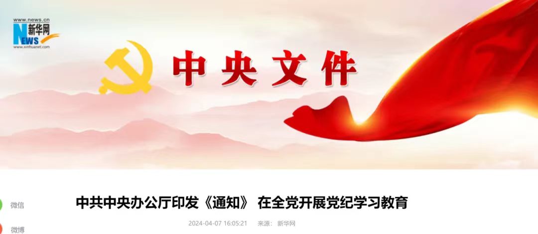 近日,中共中央办公厅印发了《关于在全党开展党纪学习教育的通知》(以下简称《通知》)。