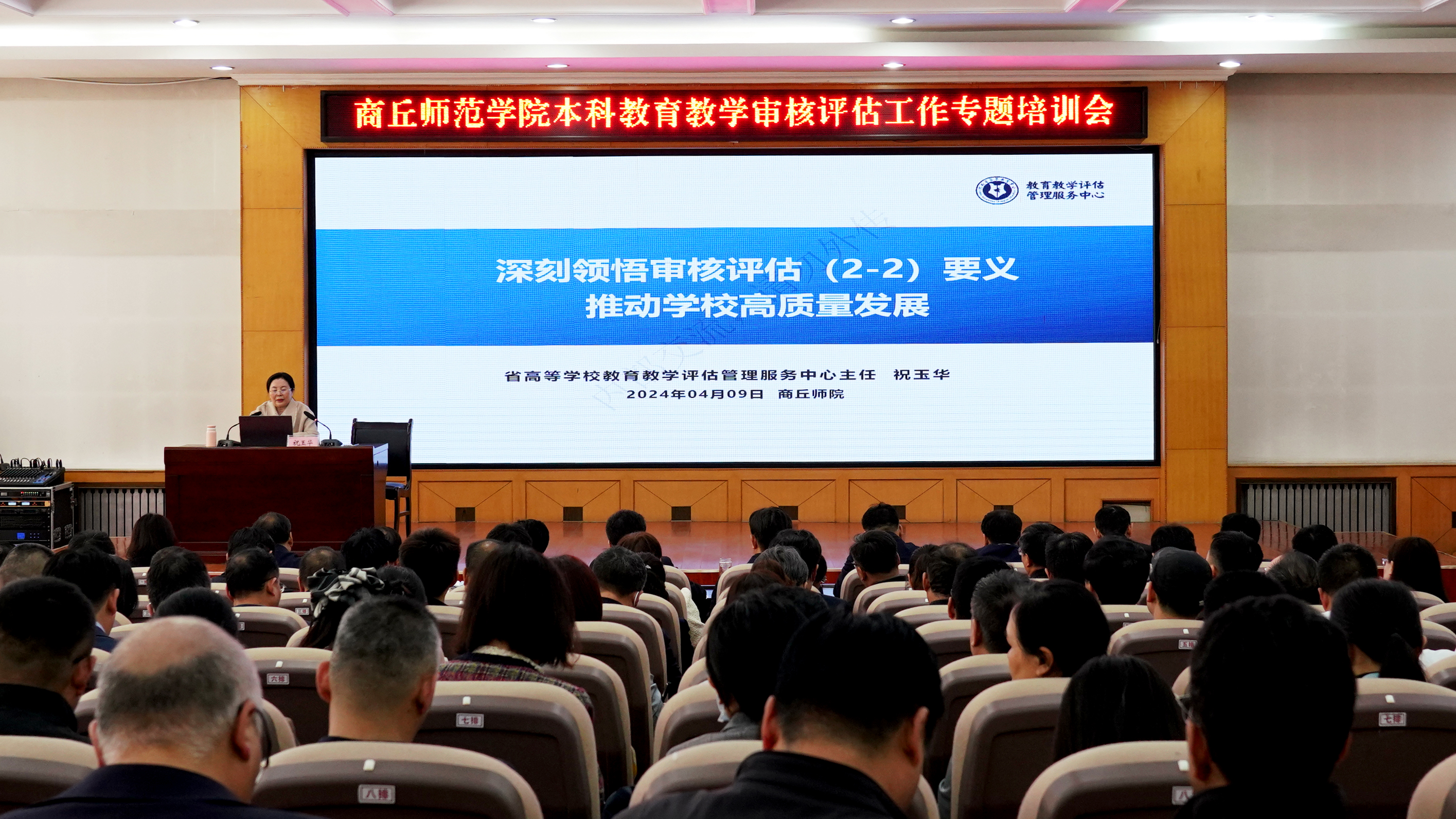 为扎实推进本科教育教学审核评估评建工作,全面做好迎评准备,4月9日,威尼斯官网召开本科教育教学审核评估工作专题培训会。河南省高等学校教育教学评估管理服务中心主任祝玉华,校领导张志坚、陈向炜、吴金山、刘国庚、何瑞强、郭文佳、程功鹏、张箭、翟滨出席会议。会议由副校长郭文佳主持。