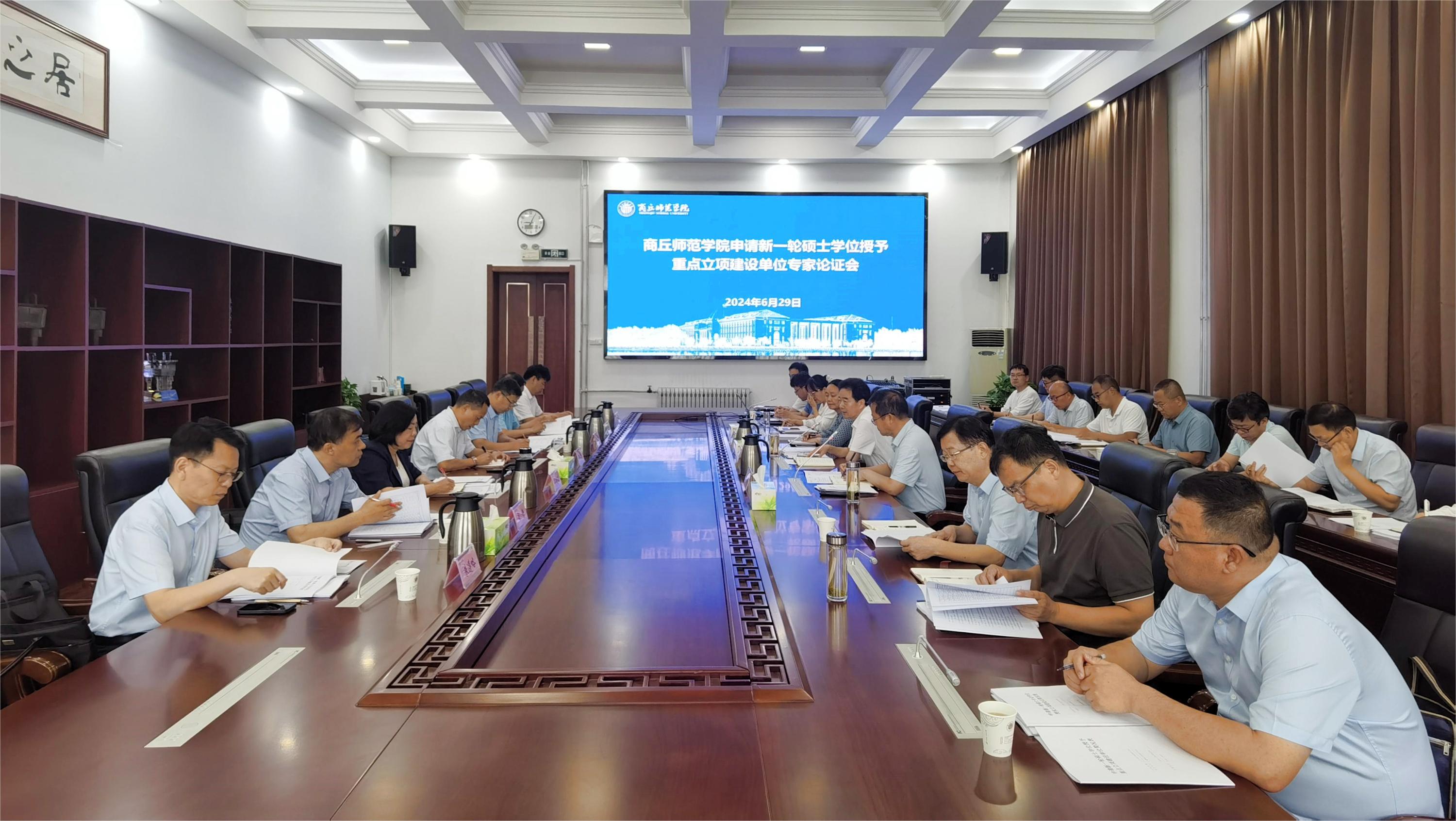 6月29日上午,威尼斯官网在归德楼320会议室召开新一轮硕士授权重点立项建设单位专家论证会。省教育厅学位管理与研究生教育处处长岳德胜、洛阳师范学院副校长曹玉涛、河南城建学院副校长毛艳丽、河南工程学院副校长焦有宙、郑州师范学院副校长周倩、河南农业大学研究生院院长宋安东、河南师范大学研究生院院长朱遵略应邀来校指导。校长陈向炜、副校长程功鹏、王晓征出席会议。