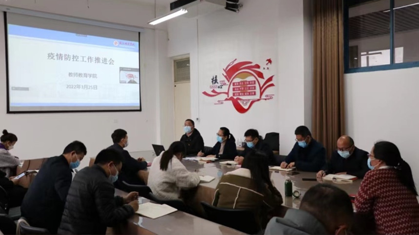 3月25日,教师教育学院召开疫情防控工作推进会,传达习近平总书记在中共中央政治局常务委员会会议上的重要讲话精神,深入贯彻落实当前新冠肺炎疫情防控系列重要决策部署。全体教职工参加会议,学院党委书记蒯秀丽主持会议并讲话。