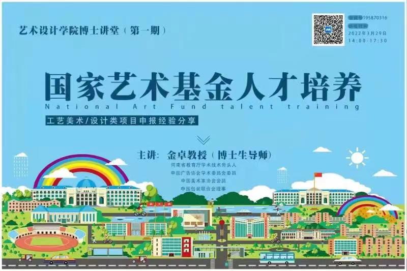 本期博士讲堂邀请到了河南省教育厅学术技术带头人、中国广告协会学术委员会委员、中国美术家协会会员、中国包装联合会理事、博士生导师金卓教授,为艺术设计学院师生分享国家艺术基金人才培养项目申报流程与经验。同时参与分享的还有中国工艺美术行业协会常务理事、江苏省工艺美术协会副会长、洛阳科技职业学院艺术与设计学院教授张嘉伟教授。