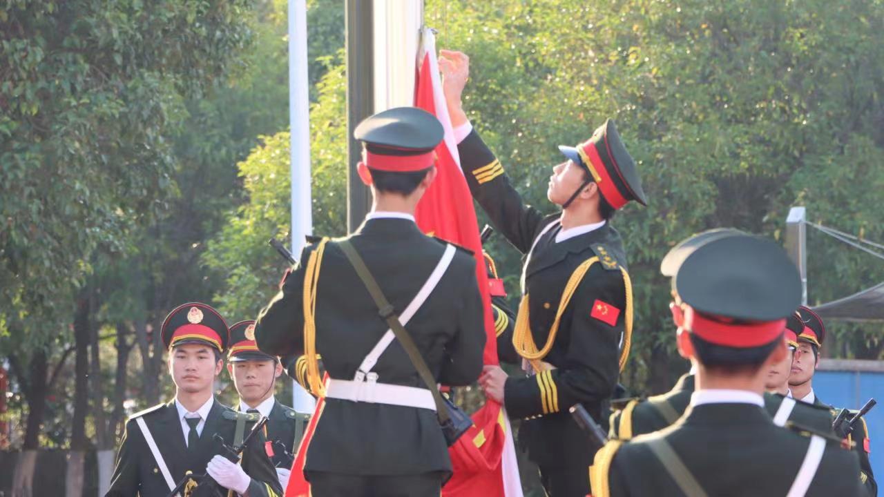 清晨6时30分,参加活动的师生在梁园校区体育场集合完毕。6时40分,校国旗护卫队护送国旗从远处走来,护卫队员动作整齐划一,昂首挺胸,让现场师生感受到升国旗仪式的庄严与神圣。一切准备就绪,伴随着国歌的奏响,五星红旗冉冉升起,迎风飘扬,全体师生目光齐聚,心潮澎湃,眼神里透露出无以言说的自豪和对伟大祖国的崇高敬意。