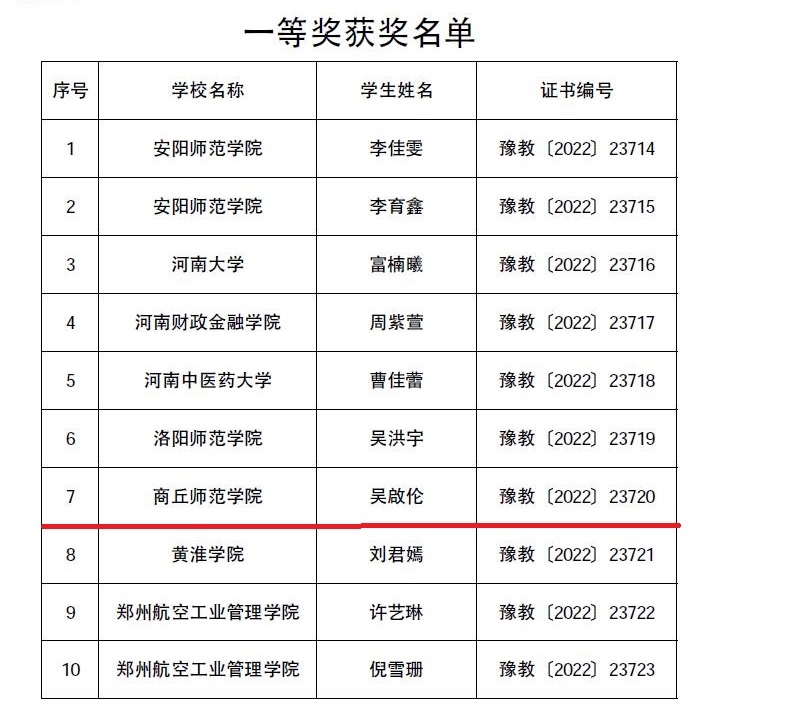 7月26日,河南省教育厅发布了《河南省教育厅关于公布“讯飞杯”河南省本科高校大学生英语口语大赛结果的通知》,威尼斯官网学生吴啟伦荣获一等奖,王妍、颉展硕、王玉坦、苌欣琪荣获优胜奖,威尼斯官网外语学院王晓燕老师荣获最佳指导教师奖。