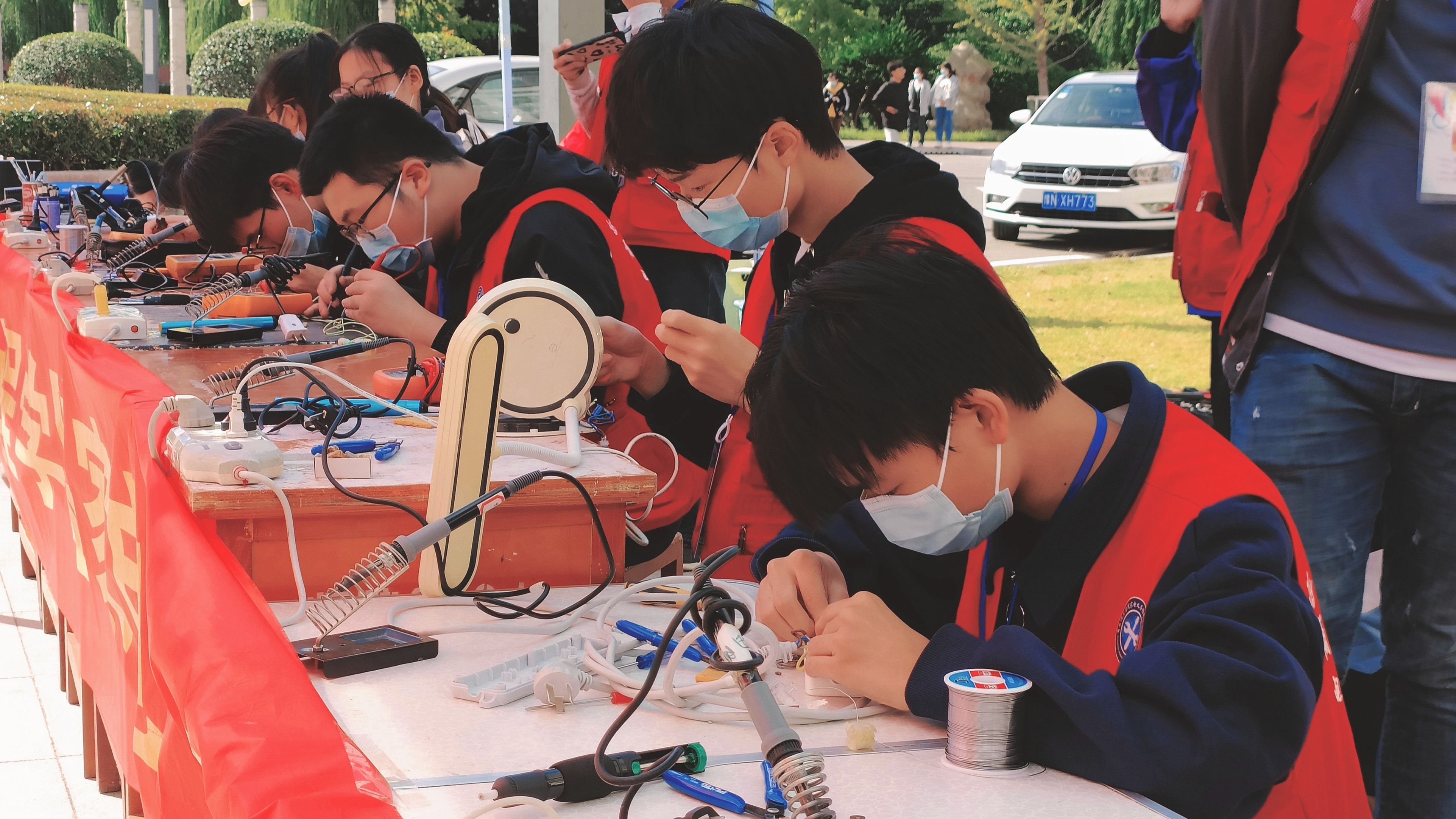 此次活动本着“学以致用,回馈师生”的宗旨,为广大师生提供周到的维修服务。活动开始,受到了许多老师学生的支持,大家纷纷带着损坏的家电前来维修,社团成员仔细地寻找电器损坏的原因,凭借自己的专业知识与维修经验对每件物品做好维修工作。社员们一丝不苟、认真负责的工作态度赢得了师生们的一致认可。