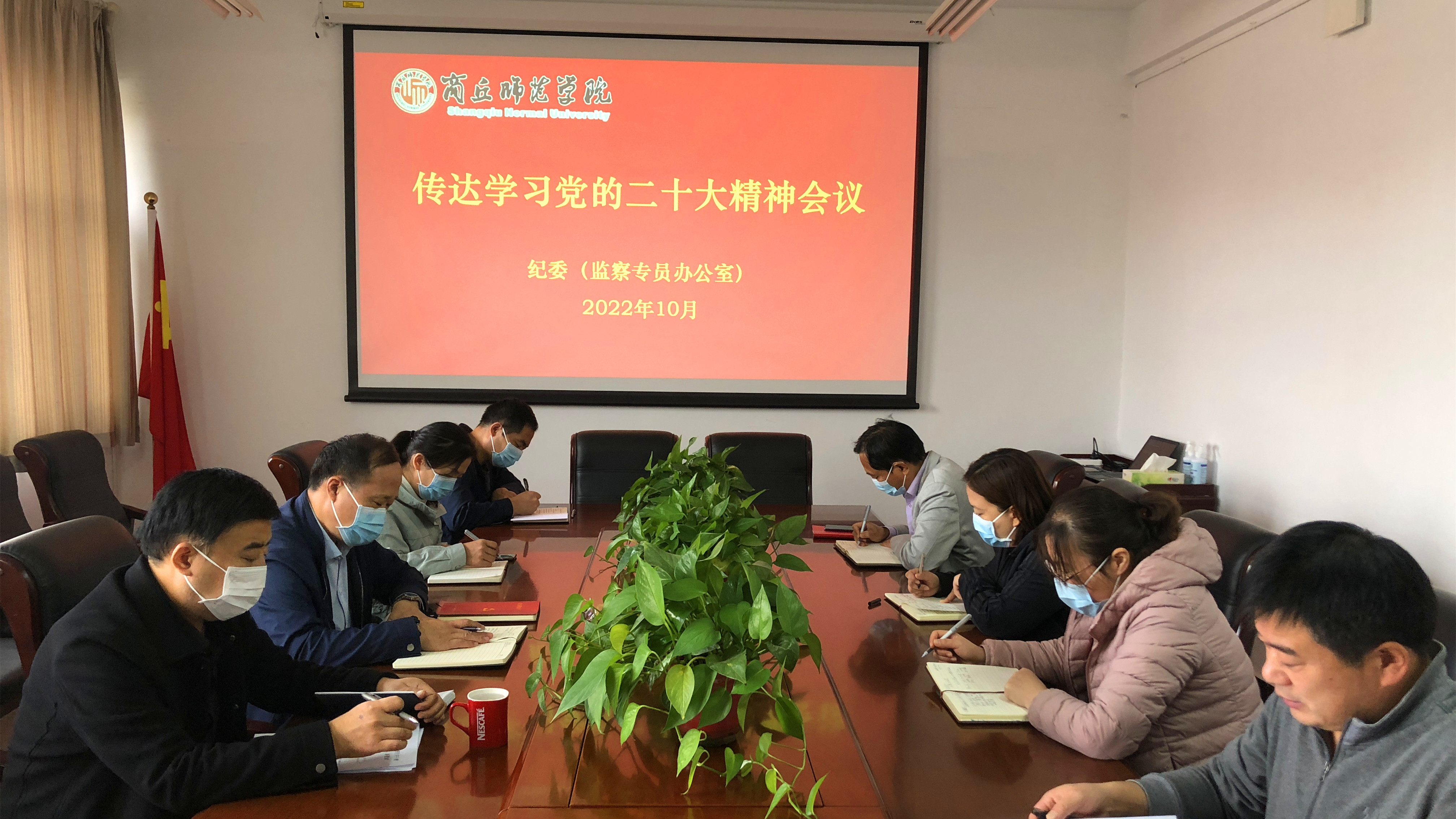10月25日,校纪委(监察专员办公室)召开专题会议,传达学习党的二十大精神,结合威尼斯官网纪检监察工作实际,交流学习体会,研究部署学习宣传和贯彻落实工作。全体专职纪检监察干部参加了会议。校纪委副书记陈东主持会议。