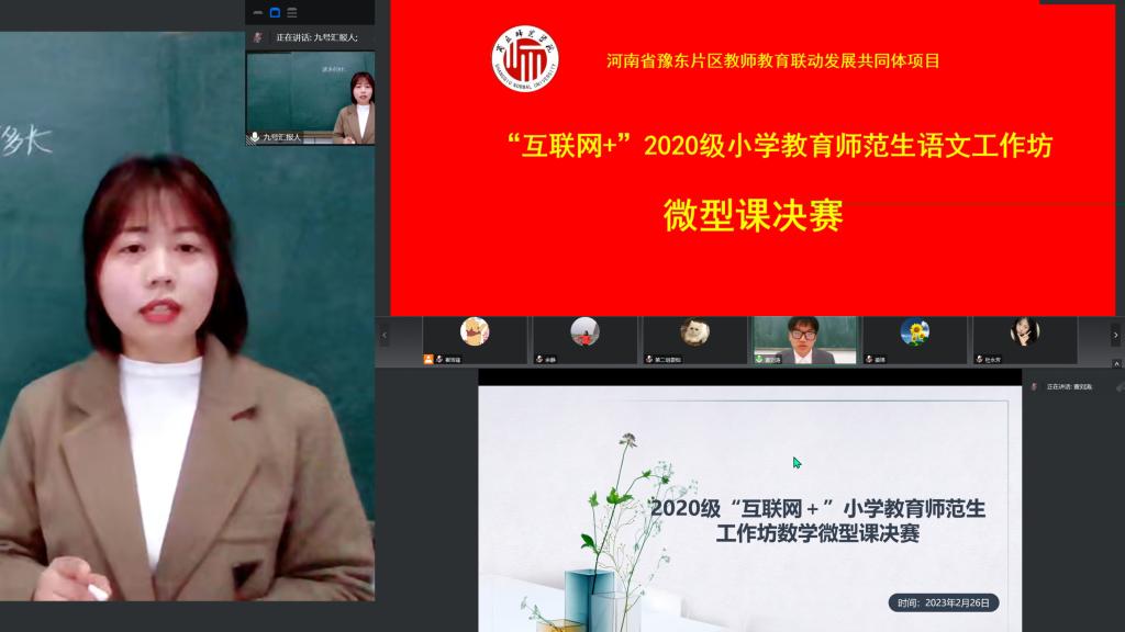 2月26日,“互联网+”小学教育师范生成长工作坊微型课比赛以腾讯会议的方式正式举办,商丘市22名一线名师参与本次活动并担任评委,教师教育学院院长孙旭和小学教育专业全体师生共同参加。